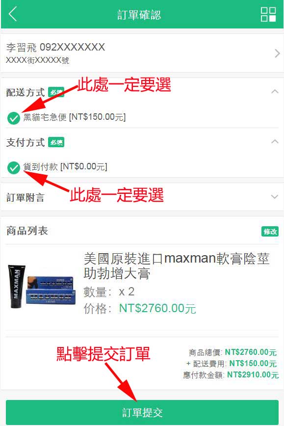 填寫個人信息(聯繫方式,配送方式,收貨地址等)